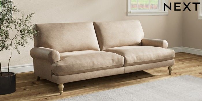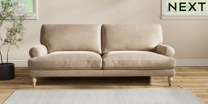 7.2.10 Erin Deep Relaxed Sit 3 Seater Sofa Luxe Chenille Mid Camel Beige High Classic Turned - Light | Made Click here to use our website with more accessibility support, for example screen readers
