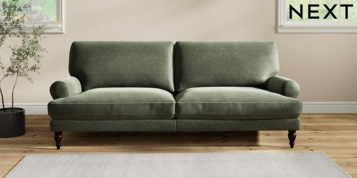 7.2.10 Erin Deep Relaxed Sit 3 Seater Sofa Luxe Chenille Mid Green High Classic Turned - Dark | Made Click here to use our website with more accessibility support, for example screen readers