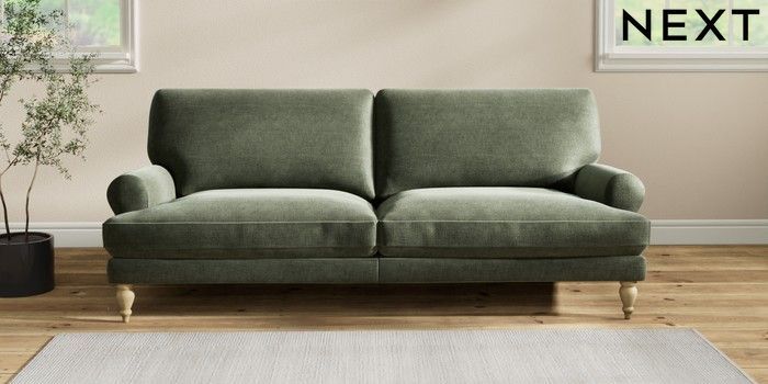 7.2.10 Erin Deep Relaxed Sit 3 Seater Sofa Luxe Chenille Mid Green High Classic Turned - Light | Made Click here to use our website with more accessibility support, for example screen readers
