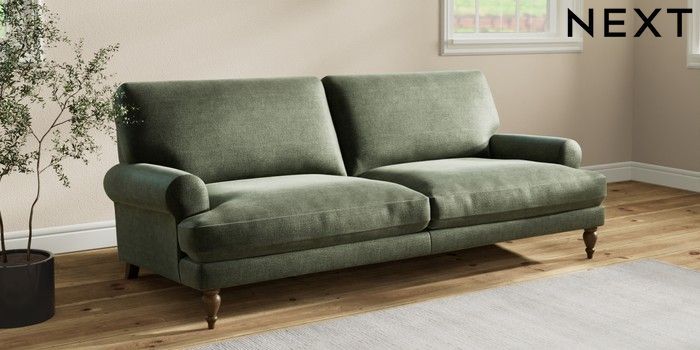 7.2.10 Erin Deep Relaxed Sit 3 Seater Sofa Luxe Chenille Mid Green High Classic Turned - Mid | Made Click here to use our website with more accessibility support, for example screen readers