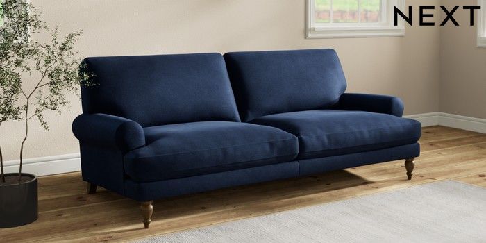 7.2.10 Erin Deep Relaxed Sit 3 Seater Sofa Luxe Chenille Navy Blue High Classic Turned - Mid | Made Click here to use our website with more accessibility support, for example screen readers