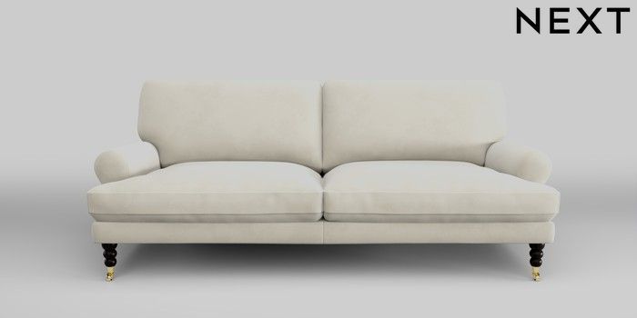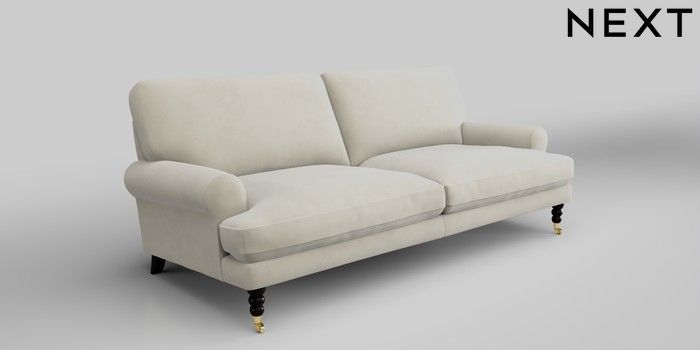 7.2.10 Erin Deep Relaxed Sit 3 Seater Sofa Luxe Chenille Oyster High Classic Turned Brass Castor - Dark | Made Click here to use our website with more accessibility support, for example screen readers