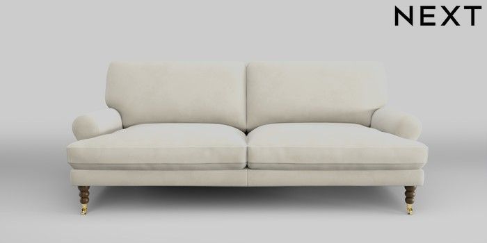 7.2.10 Erin Deep Relaxed Sit 3 Seater Sofa Luxe Chenille Oyster High Classic Turned Brass Castor - Mid | Made Click here to use our website with more accessibility support, for example screen readers