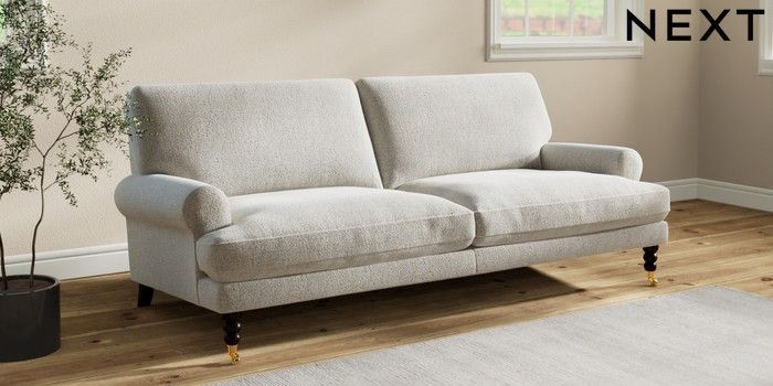 7.2.10 Erin Deep Relaxed Sit 3 Seater Sofa Multi Weave Light Blue High Classic Turned Brass Castor - Dark | Made Click here to use our website with more accessibility support, for example screen readers
