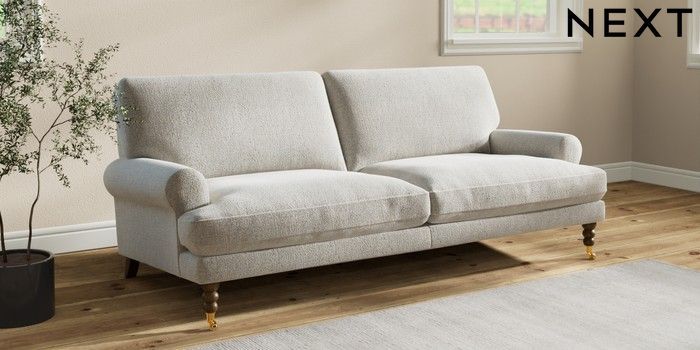 7.2.10 Erin Deep Relaxed Sit 3 Seater Sofa Multi Weave Light Blue High Classic Turned Brass Castor - Mid | Made Click here to use our website with more accessibility support, for example screen readers