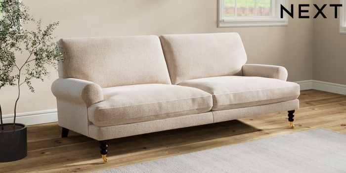 7.2.10 Erin Deep Relaxed Sit 3 Seater Sofa Multi Weave Mid Natural High Classic Turned Brass Castor - Dark | Made Click here to use our website with more accessibility support, for example screen readers