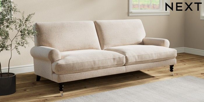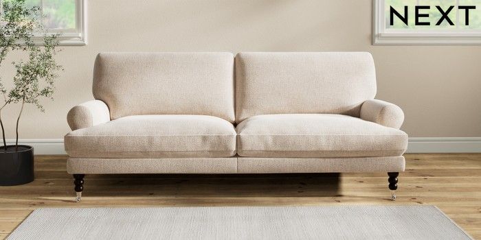 7.2.10 Erin Deep Relaxed Sit 3 Seater Sofa Multi Weave Mid Natural High Classic Turned Chrome Castor - Dark | Made Click here to use our website with more accessibility support, for example screen readers