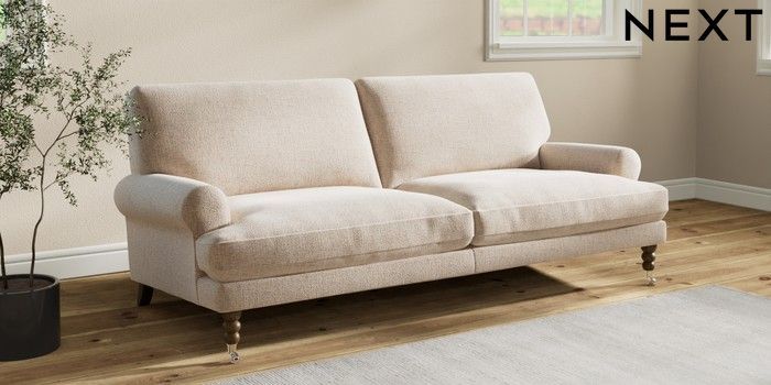 7.2.10 Erin Deep Relaxed Sit 3 Seater Sofa Multi Weave Mid Natural High Classic Turned Chrome Castor - Mid | Made Click here to use our website with more accessibility support, for example screen readers