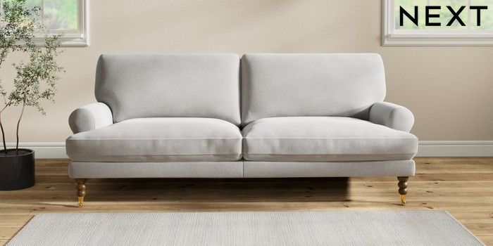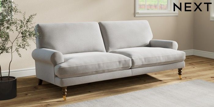 7.2.10 Erin Deep Relaxed Sit 3 Seater Sofa Natural Mix Light Grey High Classic Turned Brass Castor - Mid | Made Click here to use our website with more accessibility support, for example screen readers