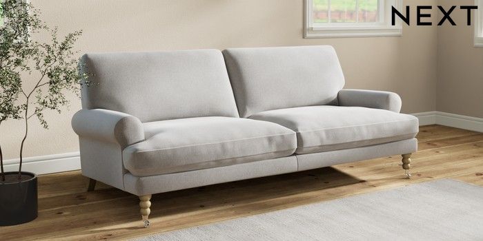 7.2.10 Erin Deep Relaxed Sit 3 Seater Sofa Natural Mix Light Grey High Classic Turned Chrome Castor - Light | Made Click here to use our website with more accessibility support, for example screen readers