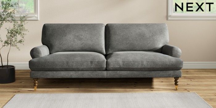 7.2.10 Erin Deep Relaxed Sit 3 Seater Sofa Plush Chenille Dark Grey High Classic Turned Brass Castor - Mid | Made Click here to use our website with more accessibility support, for example screen readers