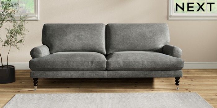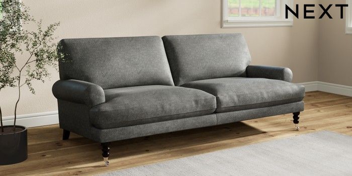 7.2.10 Erin Deep Relaxed Sit 3 Seater Sofa Plush Chenille Dark Grey High Classic Turned Chrome Castor - Dark | Made Click here to use our website with more accessibility support, for example screen readers