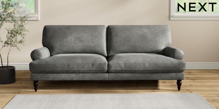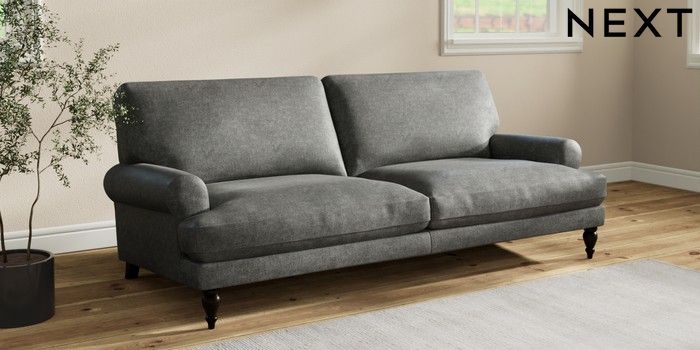 7.2.10 Erin Deep Relaxed Sit 3 Seater Sofa Plush Chenille Dark Grey High Classic Turned - Dark | Made Click here to use our website with more accessibility support, for example screen readers