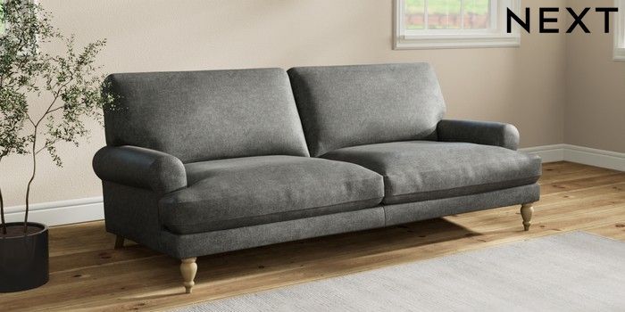 7.2.10 Erin Deep Relaxed Sit 3 Seater Sofa Plush Chenille Dark Grey High Classic Turned - Light | Made Click here to use our website with more accessibility support, for example screen readers