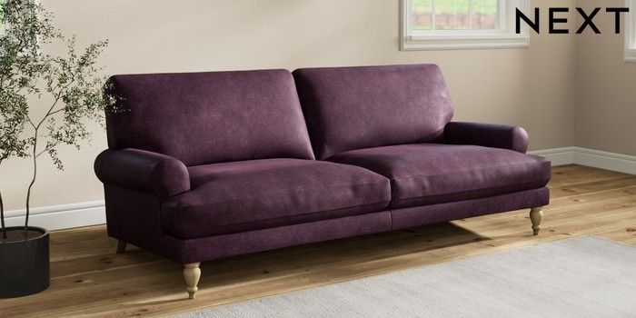 7.2.10 Erin Deep Relaxed Sit 3 Seater Sofa Plush Chenille Dark Plum Purple High Classic Turned - Light | Made Click here to use our website with more accessibility support, for example screen readers
