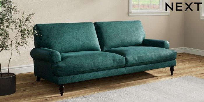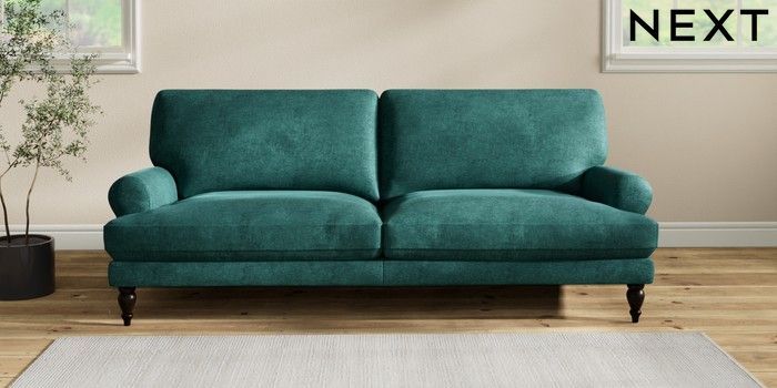 7.2.10 Erin Deep Relaxed Sit 3 Seater Sofa Plush Chenille Dark Teal Green High Classic Turned - Dark | Made Click here to use our website with more accessibility support, for example screen readers