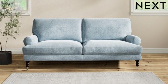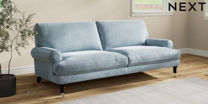 7.2.10 Erin Deep Relaxed Sit 3 Seater Sofa Plush Chenille Light Blue High Classic Turned Chrome Castor - Dark | Made Click here to use our website with more accessibility support, for example screen readers