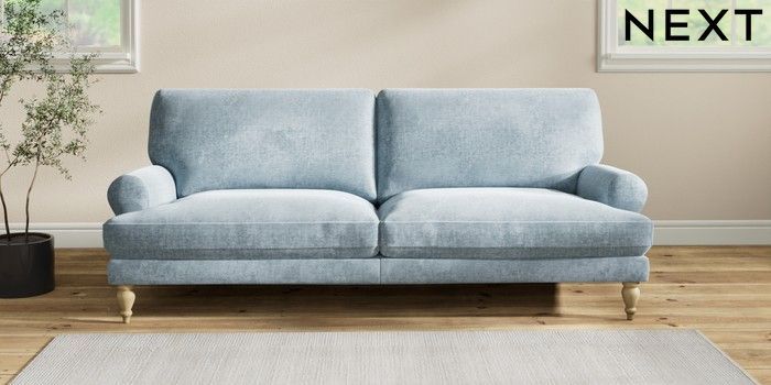 7.2.10 Erin Deep Relaxed Sit 3 Seater Sofa Plush Chenille Light Blue High Classic Turned - Light | Made Click here to use our website with more accessibility support, for example screen readers