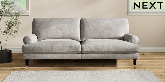 7.2.10 Erin Deep Relaxed Sit 3 Seater Sofa Plush Chenille Light Grey High Classic Turned Chrome Castor - Dark | Made Click here to use our website with more accessibility support, for example screen readers