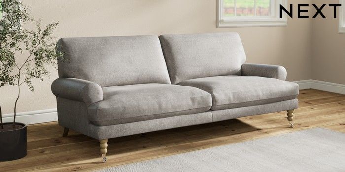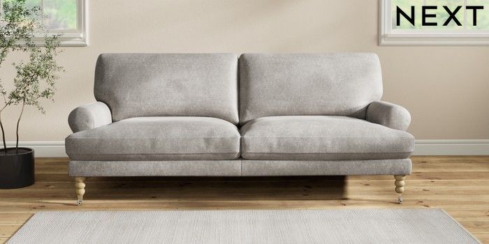 7.2.10 Erin Deep Relaxed Sit 3 Seater Sofa Plush Chenille Light Grey High Classic Turned Chrome Castor - Light | Made Click here to use our website with more accessibility support, for example screen readers
