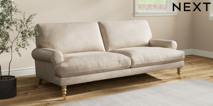 7.2.10 Erin Deep Relaxed Sit 3 Seater Sofa Plush Chenille Light Natural High Classic Turned Brass Castor - Light | Made Click here to use our website with more accessibility support, for example screen readers