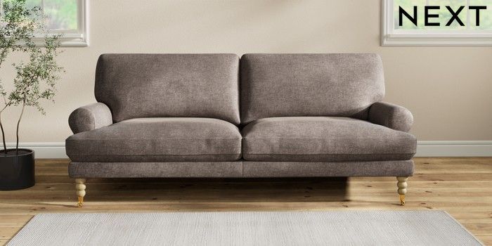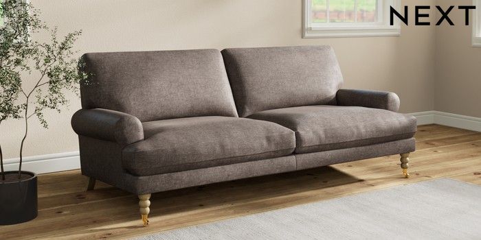 7.2.10 Erin Deep Relaxed Sit 3 Seater Sofa Plush Chenille Mink Brown High Classic Turned Brass Castor - Light | Made Click here to use our website with more accessibility support, for example screen readers