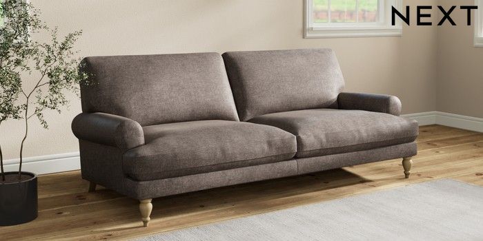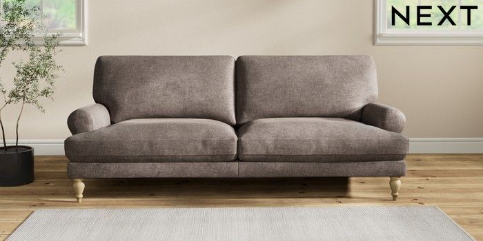 7.2.10 Erin Deep Relaxed Sit 3 Seater Sofa Plush Chenille Mink Brown High Classic Turned - Light | Made Click here to use our website with more accessibility support, for example screen readers