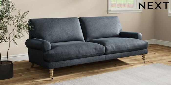 7.2.10 Erin Deep Relaxed Sit 3 Seater Sofa Plush Chenille Slate Blue High Classic Turned Chrome Castor - Light | Made Click here to use our website with more accessibility support, for example screen readers