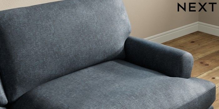 7.2.10 Erin Deep Relaxed Sit 3 Seater Sofa Plush Chenille Slate Blue High Classic Turned Chrome Castor - Mid | Made Click here to use our website with more accessibility support, for example screen readers