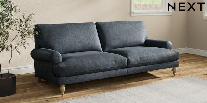 7.2.10 Erin Deep Relaxed Sit 3 Seater Sofa Plush Chenille Slate Blue High Classic Turned - Light | Made Click here to use our website with more accessibility support, for example screen readers