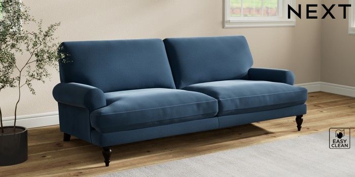 7.2.10 Erin Deep Relaxed Sit 3 Seater Sofa Plush Velvet Easy Clean Airforce Blue High Classic Turned - Dark | Made Click here to use our website with more accessibility support, for example screen readers