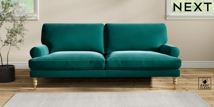 7.2.10 Erin Deep Relaxed Sit 3 Seater Sofa Plush Velvet Easy Clean Juniper Green High Classic Turned Brass Castor - Light | Made Click here to use our website with more accessibility support, for example screen readers