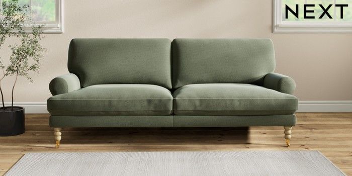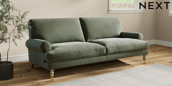 7.2.10 Erin Deep Relaxed Sit 3 Seater Sofa Relaxed Linen Look Dark Green High Classic Turned Brass Castor - Light | Made Click here to use our website with more accessibility support, for example screen readers
