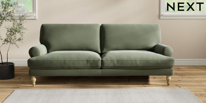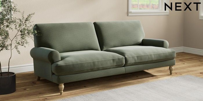 7.2.10 Erin Deep Relaxed Sit 3 Seater Sofa Relaxed Linen Look Dark Green High Classic Turned - Light | Made Click here to use our website with more accessibility support, for example screen readers