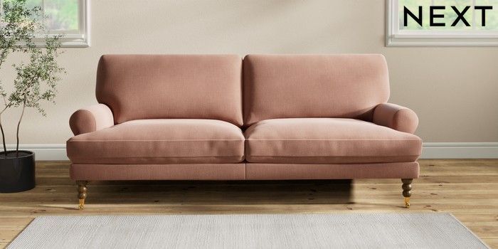 7.2.10 Erin Deep Relaxed Sit 3 Seater Sofa Relaxed Linen Look Light Rust Brown High Classic Turned Brass Castor - Mid | Made Click here to use our website with more accessibility support, for example screen readers