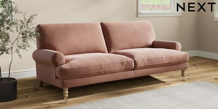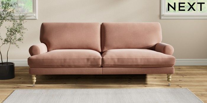 7.2.10 Erin Deep Relaxed Sit 3 Seater Sofa Relaxed Linen Look Light Rust Brown High Classic Turned Chrome Castor - Light | Made Click here to use our website with more accessibility support, for example screen readers