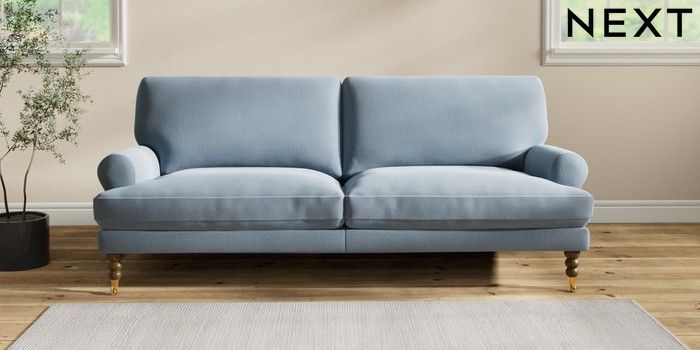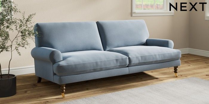 7.2.10 Erin Deep Relaxed Sit 3 Seater Sofa Relaxed Linen Look Mid Blue High Classic Turned Brass Castor - Mid | Made Click here to use our website with more accessibility support, for example screen readers