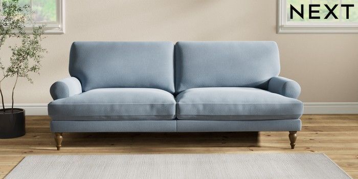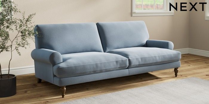 7.2.10 Erin Deep Relaxed Sit 3 Seater Sofa Relaxed Linen Look Mid Blue High Classic Turned - Mid | Made Click here to use our website with more accessibility support, for example screen readers