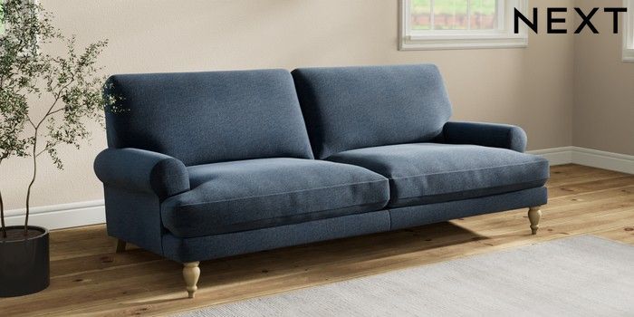 7.2.10 Erin Deep Relaxed Sit 3 Seater Sofa Ripple Chenille Dark Blue High Classic Turned - Light | Made Click here to use our website with more accessibility support, for example screen readers