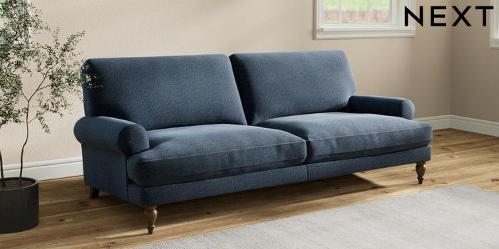 7.2.10 Erin Deep Relaxed Sit 3 Seater Sofa Ripple Chenille Dark Blue High Classic Turned - Mid | Made Click here to use our website with more accessibility support, for example screen readers