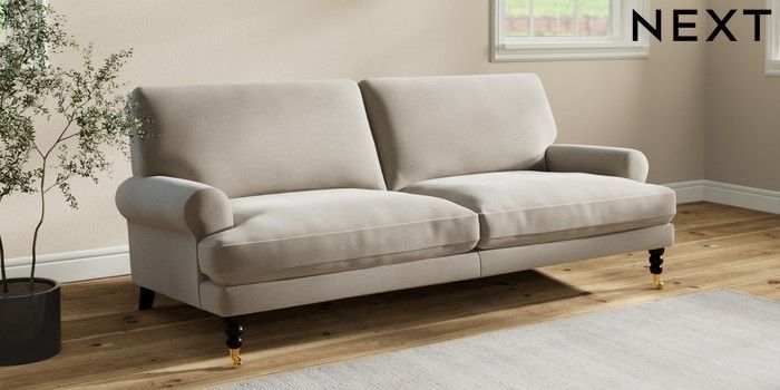 7.2.10 Erin Deep Relaxed Sit 3 Seater Sofa Ripple Chenille Light Natural High Classic Turned Brass Castor - Dark | Made Click here to use our website with more accessibility support, for example screen readers