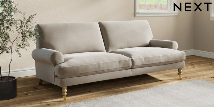 7.2.10 Erin Deep Relaxed Sit 3 Seater Sofa Ripple Chenille Light Natural High Classic Turned Brass Castor - Light | Made Click here to use our website with more accessibility support, for example screen readers
