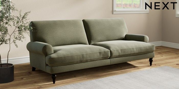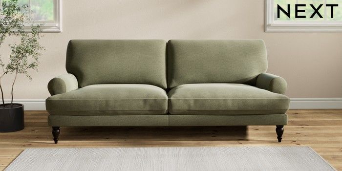 7.2.10 Erin Deep Relaxed Sit 3 Seater Sofa Ripple Chenille Mid Moss Green High Classic Turned - Dark | Made Click here to use our website with more accessibility support, for example screen readers