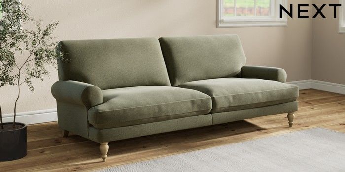 7.2.10 Erin Deep Relaxed Sit 3 Seater Sofa Ripple Chenille Mid Moss Green High Classic Turned - Light | Made Click here to use our website with more accessibility support, for example screen readers