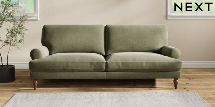 7.2.10 Erin Deep Relaxed Sit 3 Seater Sofa Ripple Chenille Mid Moss Green High Classic Turned - Mid | Made Click here to use our website with more accessibility support, for example screen readers
