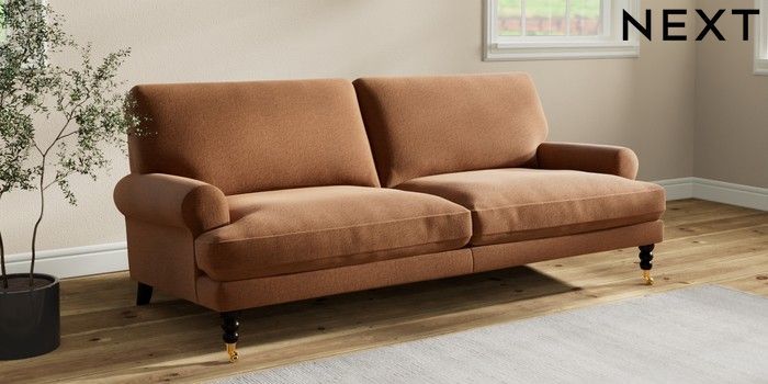 7.2.10 Erin Deep Relaxed Sit 3 Seater Sofa Ripple Chenille Mid Rust Brown High Classic Turned Brass Castor - Dark | Made Click here to use our website with more accessibility support, for example screen readers