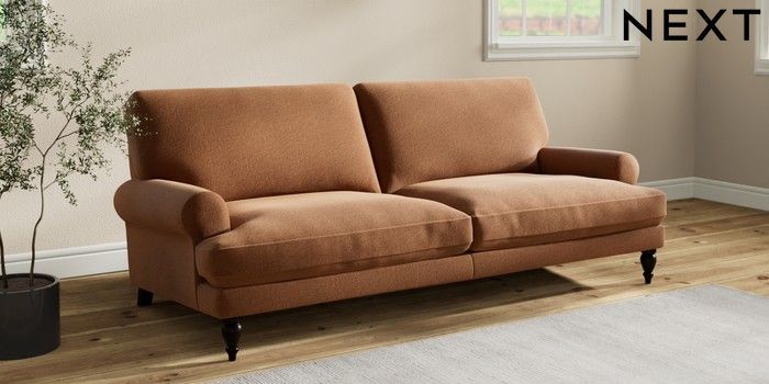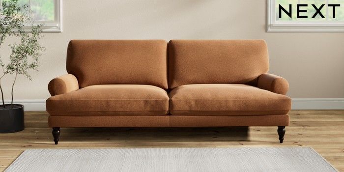 7.2.10 Erin Deep Relaxed Sit 3 Seater Sofa Ripple Chenille Mid Rust Brown High Classic Turned - Dark | Made Click here to use our website with more accessibility support, for example screen readers