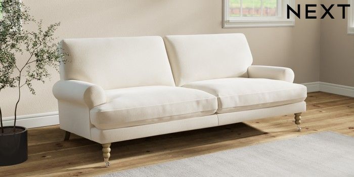 7.2.10 Erin Deep Relaxed Sit 3 Seater Sofa Ripple Chenille Oyster High Classic Turned Chrome Castor - Light | Made Click here to use our website with more accessibility support, for example screen readers