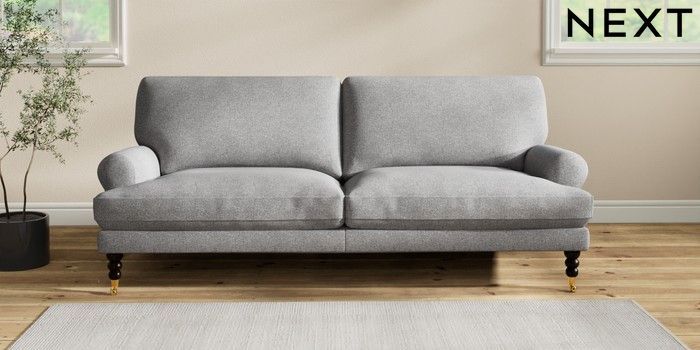 7.2.10 Erin Deep Relaxed Sit 3 Seater Sofa Studio Chenille Mid Grey High Classic Turned Brass Castor - Dark | Made Click here to use our website with more accessibility support, for example screen readers