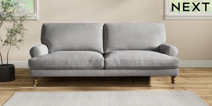 7.2.10 Erin Deep Relaxed Sit 3 Seater Sofa Studio Chenille Mid Grey High Classic Turned Chrome Castor - Mid | Made Click here to use our website with more accessibility support, for example screen readers